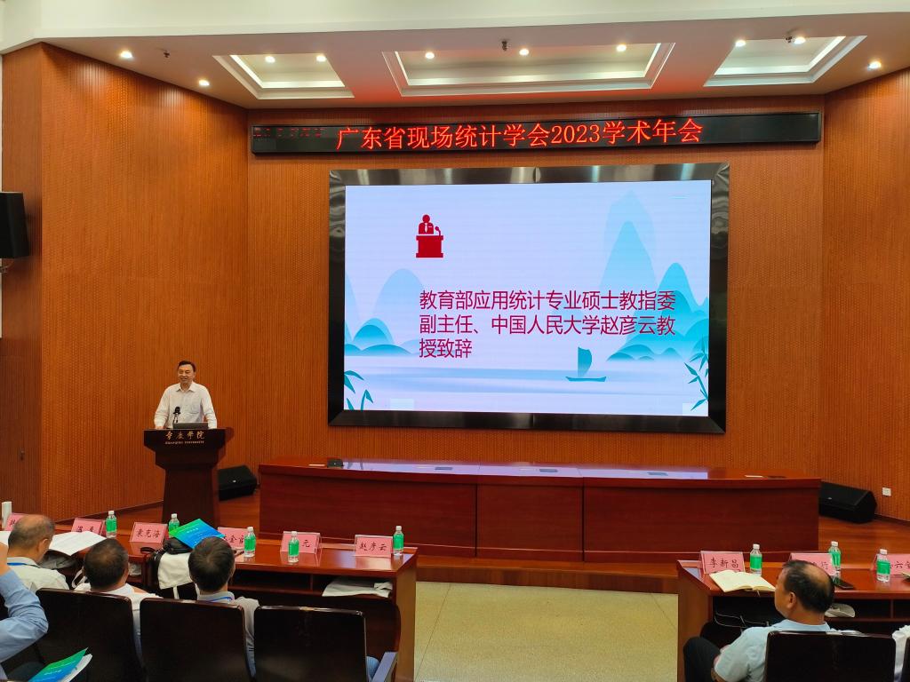 国务院学位办全国应用统计专业学位研究生教育指导委员会副主任赵彦云教授对全国应用统计专业学位研究生教育指导委员会工作进行了解读,并结合粤港澳大湾区经济发展优势分析了应用统计专业硕士学位的广阔发展前景。孙六全理事长代表学会对承办单位william威廉中文官网的大力支持、对各位代表和嘉宾的参与表示感谢,并对学会工作进行了汇报。