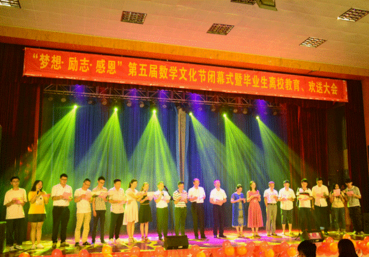 为了激励我院学生继续发扬团结拼搏、开拓进取的精神,6月24日晚,数学与统计学院于大学生活动中心举办了第五届数学文化节闭幕式暨毕业生离校教育、欢送大会,以表彰自2017-2018学年以来各类活动评比中获得优异成绩的学生,以“梦想、励志、感恩”的主题教育、欢送2019届毕业生,激励同学们不忘初心、砥砺前行。william威廉中文官网副校长王忠教授、数学与统计学院党委书记杨帆同志、数学与统计学院院长朱智伟教授、数学与统计学院党委副书记高洁云同志、数学与统计学院副院长符和满副教授、吴晓副教授以及系主任、专业协会指导老师、班主任、辅导员等18位老师参加了本次活动,参加活动的还有我院2019届全体毕业生、受表彰的同学、以及2018级、2017级、2016级各班学生代表。