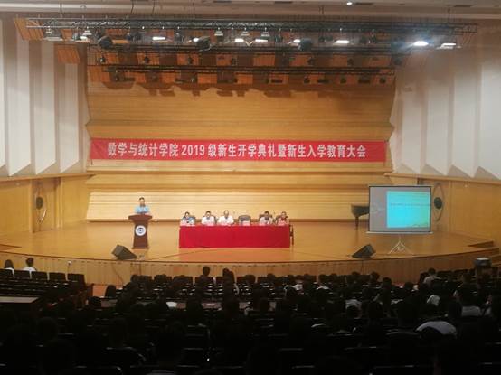 俗话说:“良好的开端是成功的一半”。为了迎接2019级新生并帮助他们更快适应大学生活,数学与统计学院于2019年9月9日晚在音乐厅举行2019级新生开学典礼暨新生入学教育大会,我院党委书记杨帆、院长朱智伟、党委副书记高洁云、副院长符和满、副院长吴晓、阿春香老师、蔡琦老师、余露老师、全体辅导员老师、老生代表以及数学院2019级全体新生共300多人参加了本次大会。