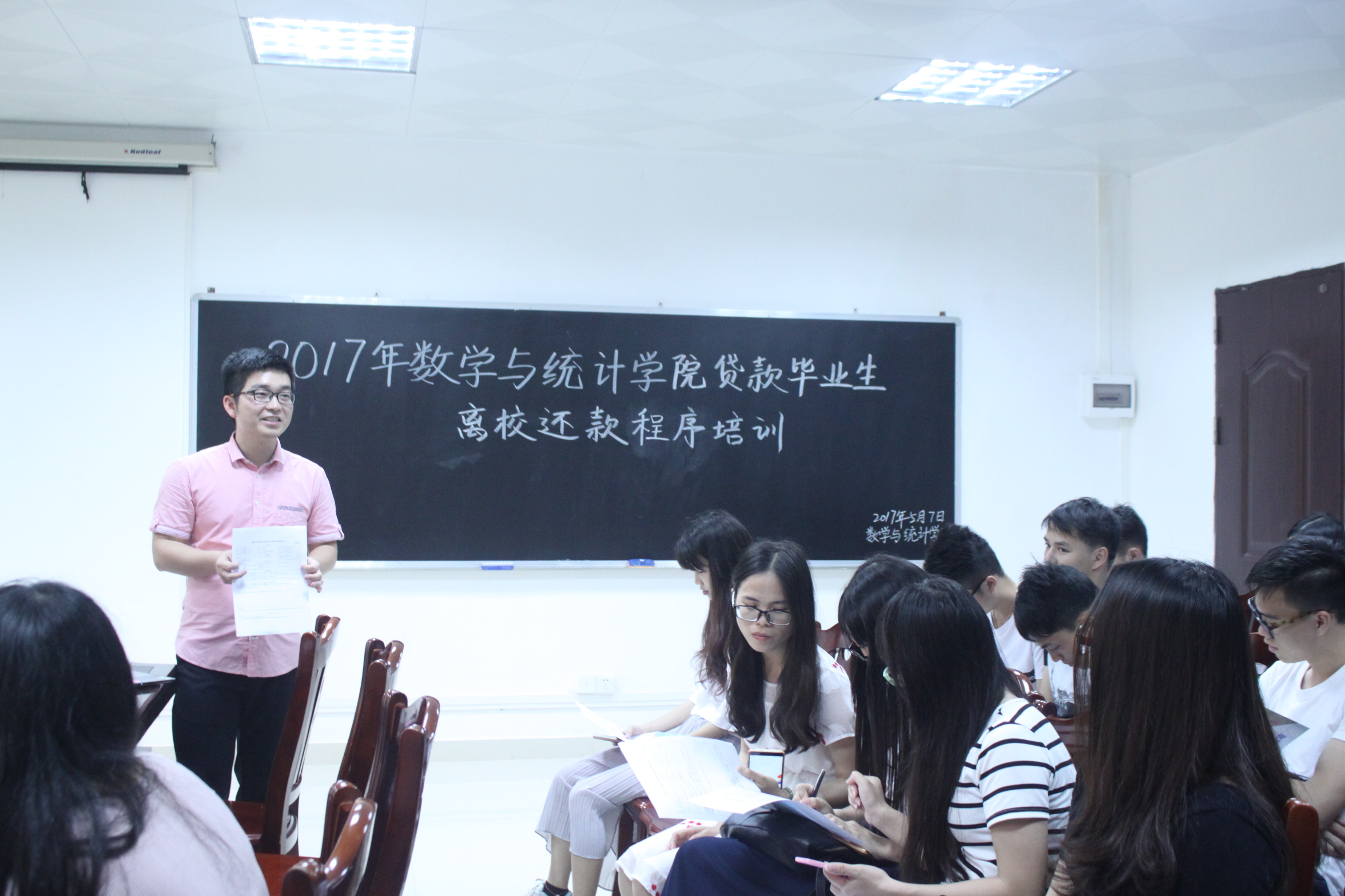 5月7日,我院在学院会议室召开2017届毕业生国家助学贷款还款教育大会暨诚信教育大会,会议由辅导员吴泽宾主讲,全体2017届贷款毕业生参加了此次会议。