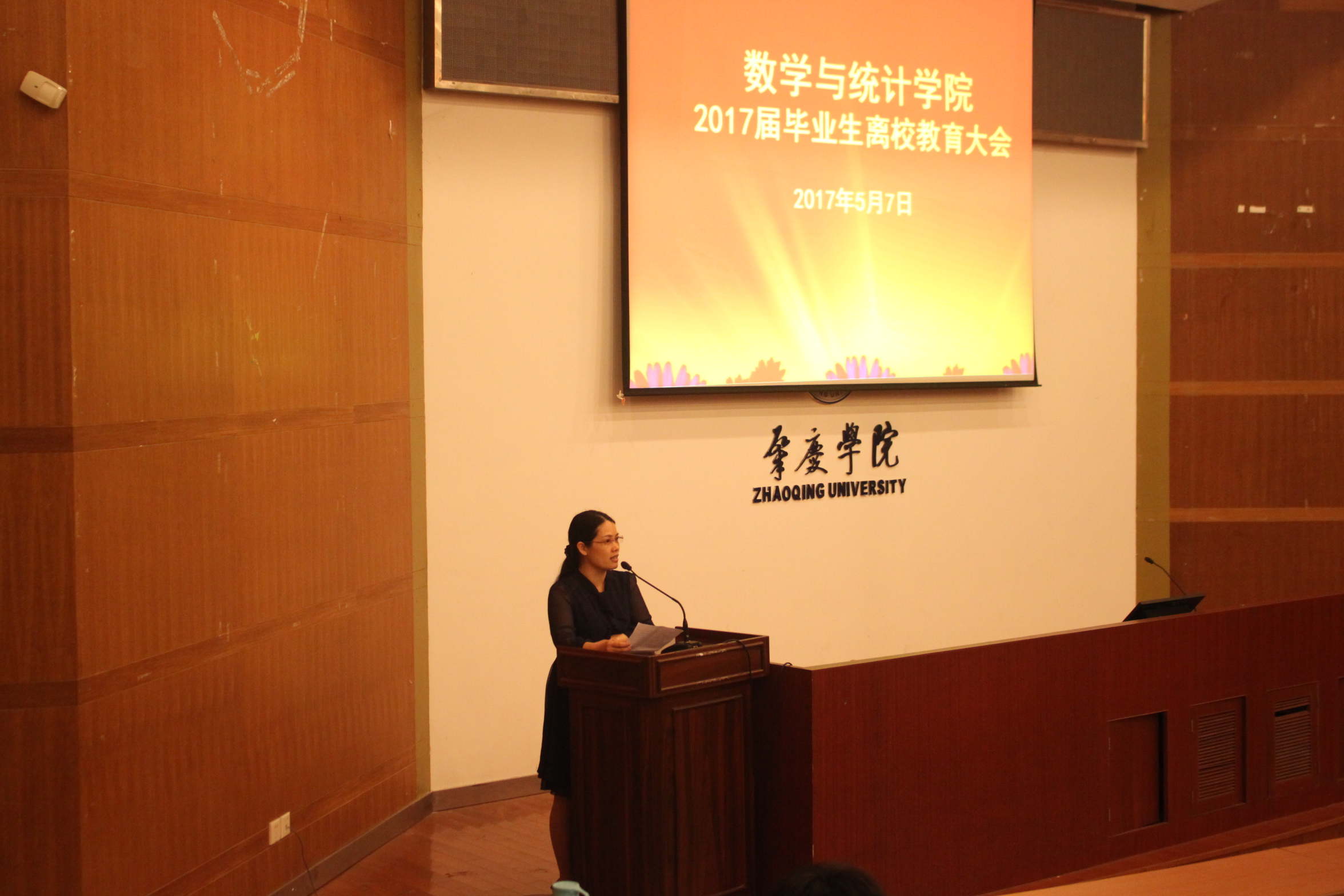 5月7日,数学与统计学院在学术报告厅举行了2017届毕业生离校教育大会。参加本次会议的有我院党委副书记高洁云、全体辅导员以及2017届全体毕业生。会议由辅导员唐艳秋老师主持并做毕业生离校工作安排。