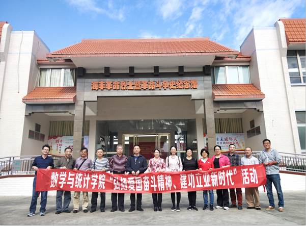 根据学校党委的部署和学院党委的工作计划,11月30日-12月2日,在朱智伟院长和高洁云副书记的带领下,数学与统计学院信息与计算科学系、大学数学教学系两个教工党支部及部分非党教师一行14人赴海陆丰革命根据地考察调研,实地开展“弘扬爱国奋斗精神、建功立业新时代”活动和主题党日活动。大家参观了海丰总农会旧址、苏维埃旧址“红宫红场”、彭湃故居、海丰革命烈士暨海丰革命斗争史纪念馆等中国第一个苏维埃政权成立的红色革命圣地和革命文物;了解彭湃一生的光辉史迹,回顾海丰人民踊跃投身革命,为了民族的解放抛头颅、洒热血、前赴后继、浴血奋战的壮烈事迹。通过参观,老师们学习到了“坚定信念、艰苦奋斗、实事求是、敢闯新路,依靠群众”的共产党人精神,接受了深刻的爱国主义教育和党的优良传统教育,提升了思想境界。革命先烈们为了共产主义事业作出的巨大贡献和牺牲,激励着老师们沿着先烈开创的道路奋勇前进的信心和决心;也激励着老师们在新时代自觉弘扬践行爱国奋斗精神,把个人理想自觉融入国家发展伟业,激发建功立业新时代的使命感、责任感,做新时代的奋斗者。