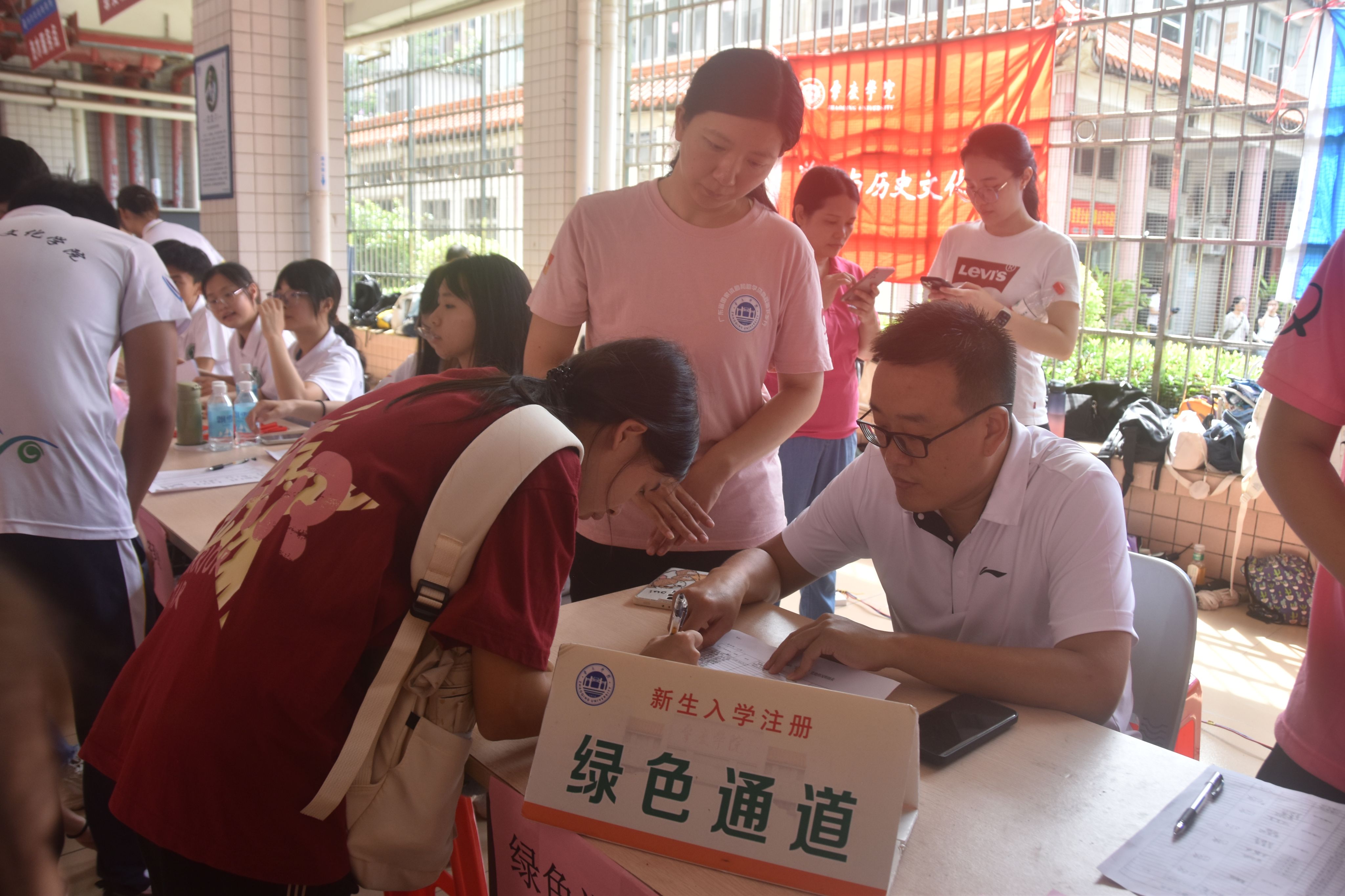 记者看到,在台风秋雨下我院迎新工作井然有序。志愿者一对一提前联系新生,与带班党员们一同带领新生到报到点。驻点工作人员积极地为新生指引。报到点工作人员热情地为新生派发宿舍钥匙、遥控器和砚园卡。辅导员孙钊和学生朋辈辅导员在绿色通道工作点给有需要的新生耐心地解答助学问题。
