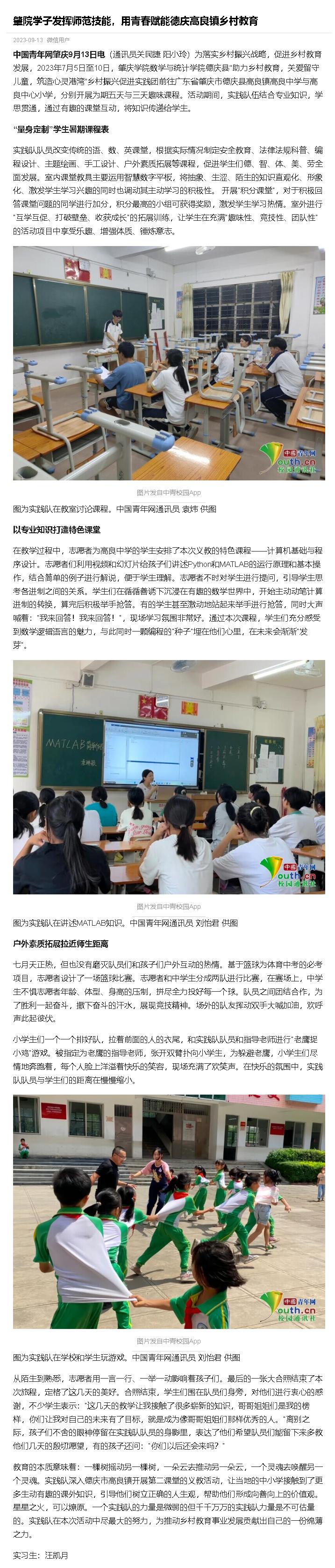 肇院学子发挥师范技能,用青春赋能德庆高良镇乡村教育