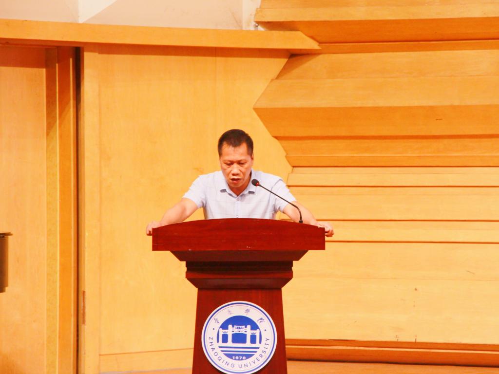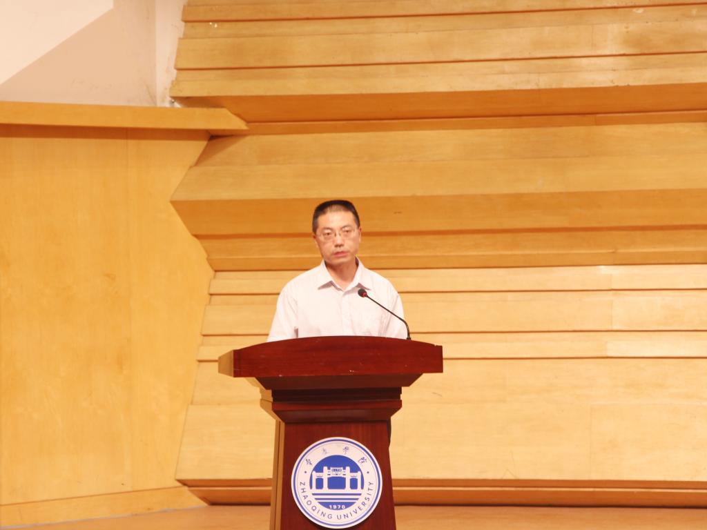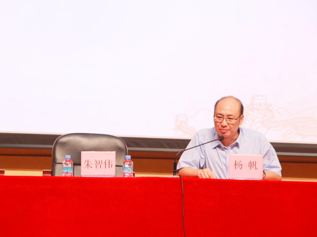 第二项议程由我院党委书记杨帆作理想信念及爱国主义教育、防疫教育。杨帆书记给新生介绍防疫注意事项,强调做好外部防控,要强身健体增强免疫力,坚定自己理想信念,培养爱国主义精神。