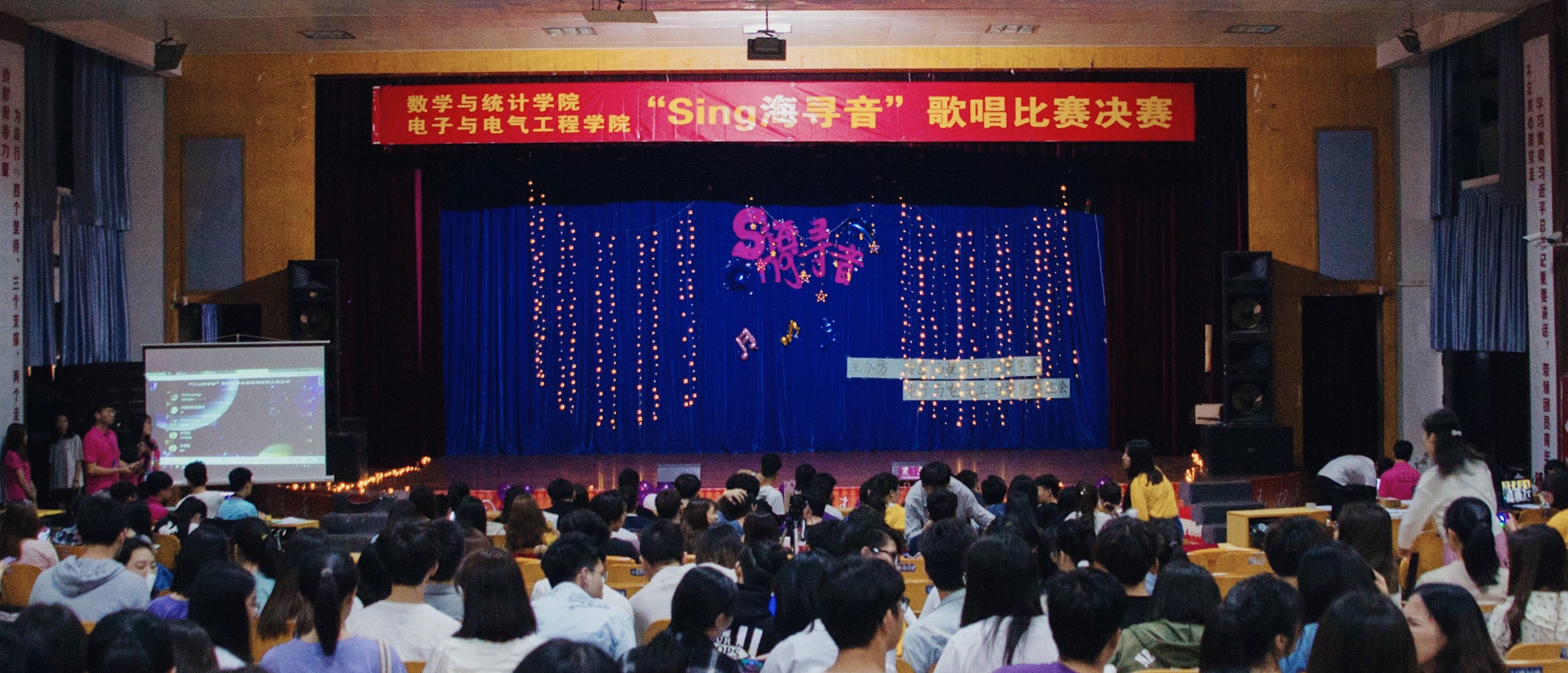 3月29日晚上7:30,william威廉中文官网数学与统计学院学生会联合电子与电气工程学院学生会于学生活动中心大礼堂举办的“SING海寻音”歌唱比赛决赛如期而至,并且当晚出席比赛大约有600名观众。