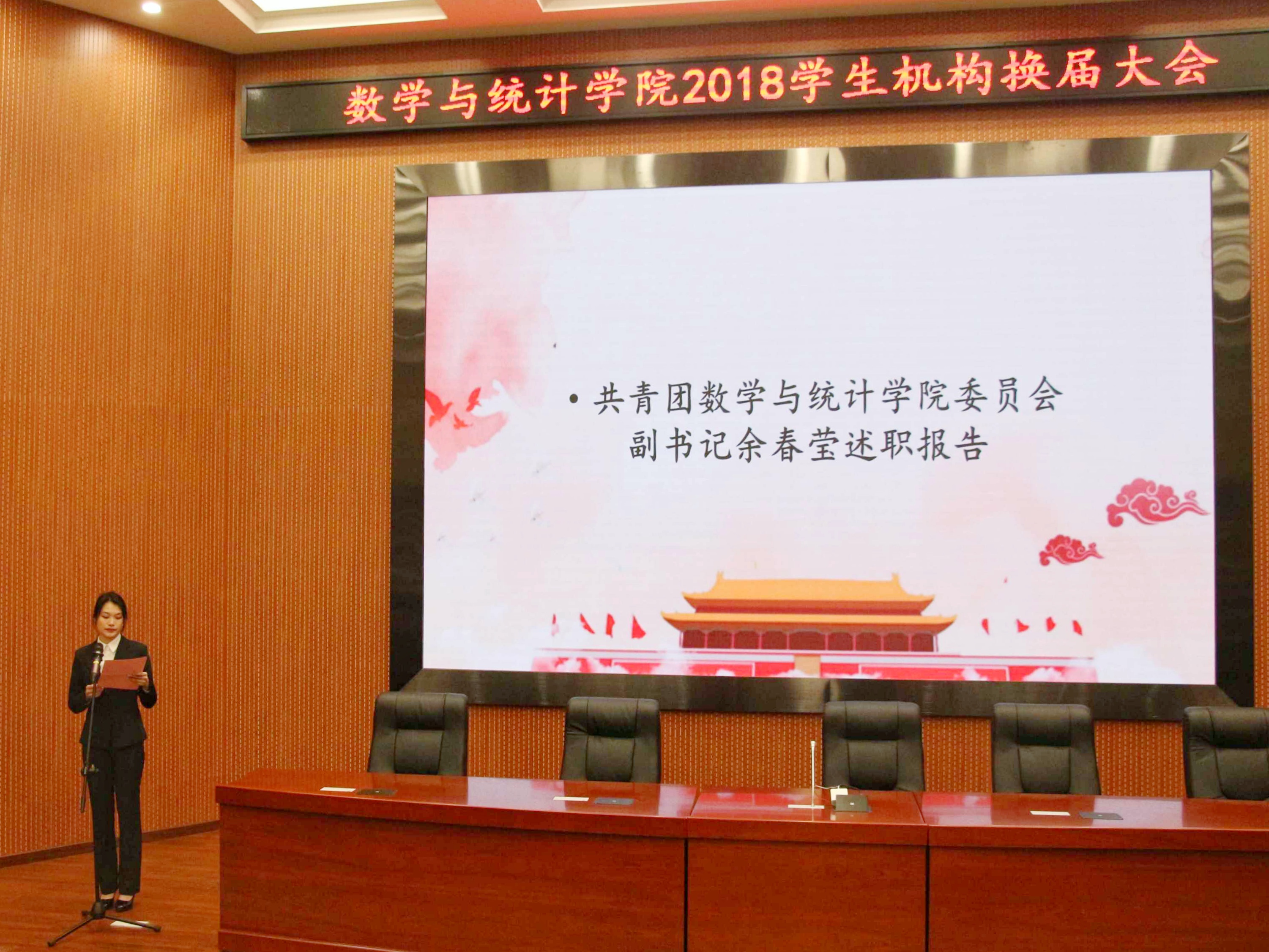 数学与统计学院于2018年12月9日下午在学术报告厅举办了学生机构总结表彰大会暨换届大会。出席本次会议的有我院党委副书记高洁云、辅导员汤瑞雪、辅导员孙钊以及五大机构退任干部及现任学生干部等。