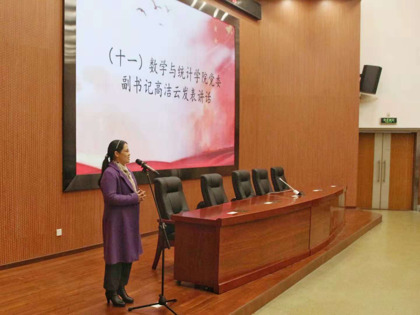 大会进行到此,已接近尾声,本次会议最后由我院党委副书记高洁云进行总结,总结中书记对五大机构的工作表示肯定与支持,并且号召各学生干部能向优秀干部学习,为数学院的学生做一个榜样。随后欣赏了各机构对退任干部所制作的祝福视频。