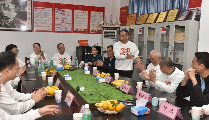 12月7日,92级财税班毕业30周年聚会在数学与统计学院308会议室举行。学校校友会、基金会秘书长周建文,审计工作部慕容居敏、任课教师卢勇、盘炜生、邱远,学院党委书记李先强,副书记高洁云,校友50多人欢聚一堂回忆求学时光、畅谈师生情谊、展望未来。92级财税班原班长刘海玲主持座谈会。