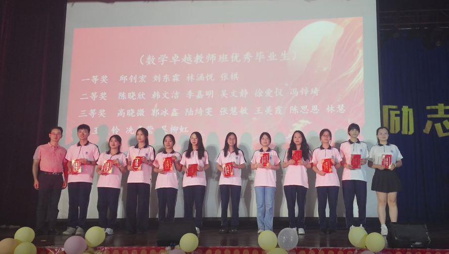 数学卓越教师班,是从数学与应用数学专业大二年级学生中择优选拔,每届30-40名学生。自2021年成立以来,该班学生的突出教学能力和专业素养获得越来越多省内外重点中小学青睐,人才培养质量得到用人单位高度评价。学院优秀校友、佛山市励志文化科技有限公司总经理孔爱群设立“励志文化”奖学金,表彰该班优秀学子,以及用于购买数学卓越教师班学生的班服。
