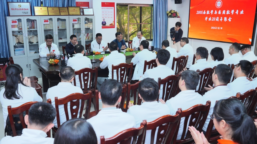 12月31日至1月1日,学院2005届数学与应用数学专业校友返校组织毕业20周年聚会,师生齐聚一堂,畅叙求学情谊。当年班主任、学院党委退休书记付本路,学院党委书记李先强、院长吴晓出席师生座谈会,校友郑志军主持会议。